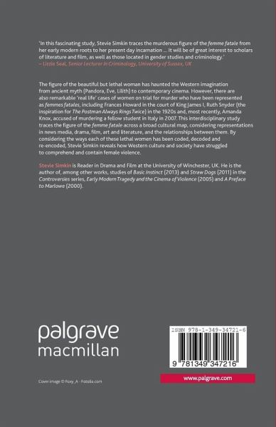"In this fascinating study, Stevie Simkin traces the murderous figure of the femme fatale from her early modern roots to her present day incarnation ... It will be of great interest to scholars of literature and film, as well as those located in gender studies and criminology." - Lizzie Seal, Senior Lecturer in Criminology, University of Sussex, UK