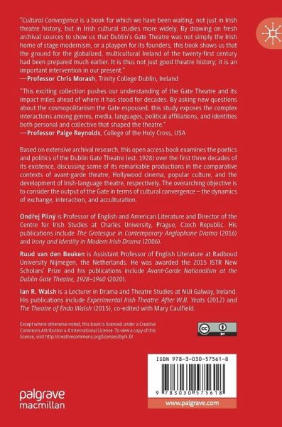 1. Introduction: Cultural Convergence at Dublin's Gate Theatre; Ondrej Pilný (Charles University, Prague, Czech Republic), Ruud van den Beuken (Radboud University Nijmegen, The Netherlands) and Ian R. Walsh (NUI Galway, Ireland).- 2. The Internationalist Dramaturgy of Hilton Edwards and Micheál mac Liammóir; Joan FitzPatrick Dean (University of Missouri - Kansas City, USA) and Radvan Markus (Charles University, Prague, Czech Republic).- 3. Gearóid Ó Lochlainn: The Gate Theatre's Other Irish-speaking Founder; Pádraig Ó Siadhail (Saint Mary's University, Halifax, Nova Scotia, Canada).- 4. The Transnational Roots of Key Figures from the Early Years of the Gate Theatre, Dublin; David Clare (Mary Immaculate College, University of Limerick, Ireland) and Nicola Morris (Trinity College Dublin, Ireland).- 5. The Other Gates: Anglo-American Influences on and from Dublin; Charlotte Purkis (University of Winchester, UK).- 6. The Brothers Capek at the Gate: R.U.R. and The Insect Play; Ondrej Pilný (Charles University, Prague, Czech Republic).- 7. Kismet: Hollywood, Orientalism and the Design Language of Padraic Colum's Mogu of the Desert; Elaine Sisson (IADT, Dublin, Ireland).- 8. Prussian Discipline and Lesbian Vulnerability: Christa Winsloe's Children in Uniform at the Gate; Yvonne Ivory (University of South Carolina, USA).- 9. 'We belong to the world': Christine Longford's War Plays during Irish Neutrality; Erin Grogan (Texas Tech University, USA).