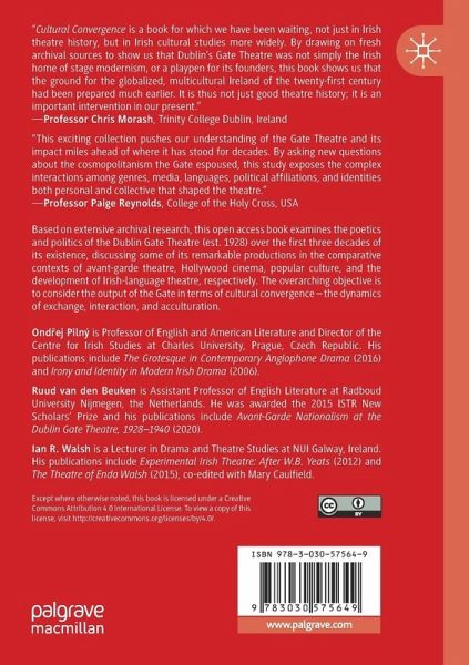 Based on extensive archival research, this open access book examines the poetics and politics of the Dublin Gate Theatre (est. 1928) over the first three decades of its existence, discussing some of its remarkable productions in the comparative contexts of avant-garde theatre, Hollywood cinema, popular culture, and the development of Irish-language theatre, respectively. The overarching objective is to consider the output of the Gate in terms of cultural convergence - the dynamics of exchange, interaction, and acculturation that reveal the workings of transnational infrastructures.
