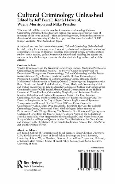 This book brings together cutting-edge research across the range of meanings of the term 'cultural'. A landmark text on the crime-culture nexus, its editors and authors include the leading exponents of cultural criminology on both sides of the Atlantic.