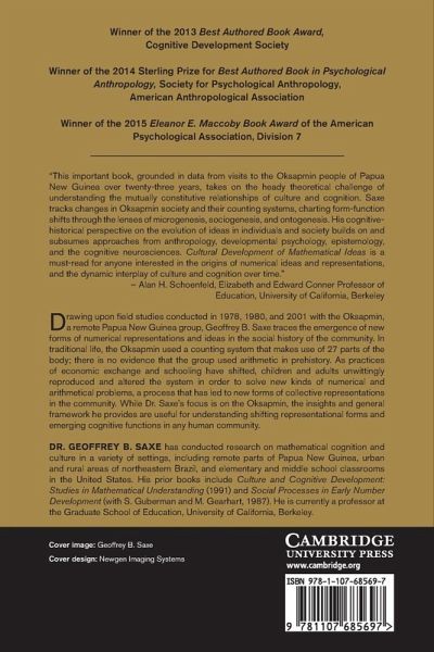Introduction Part I. The Origins of Number-Enduring Questions: 1. Culture-cognition relations 2. Cultural forms of number representation used in Oksapmin communities Part II. Economic Exchange: 3. Collective practices of economic exchange: a brief social history 4. Reproduction and alteration of numerical representations 5. Reproduction and alteration in currency token representations 6. Representational forms, functions, collective practices, and fu: a microcosm Part III. Schooling: 7. A brief history: collective practices of schooling in Oksapmin 8. Unschooled children's developing uses of the body system 9. Children's adaptations of the body system in school in 1980: an unintended consequence of postcolonial schooling 10. About twenty years later: schooling and number 11. Teachers and students as (unintentional) agents of change Part IV. Towards an Integrated Treatment of Socio-Historical and Cognitive Developmental Processes: 12. What develops? A focus on form-function relations 13. How do quantification practices develop? 14. Why do form-function relations shift? Epilogue.