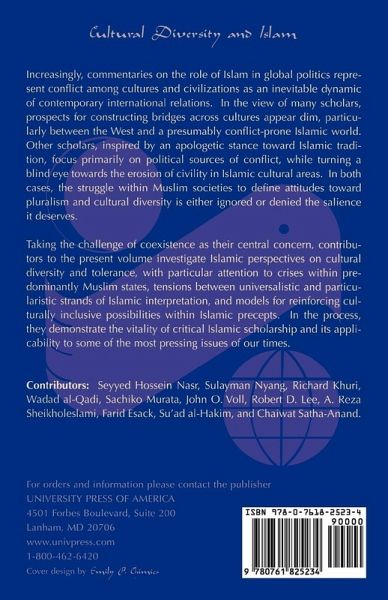 Chapter 1 Acknowledgments Chapter 2 Introduction: A Summary of Papers Chapter 3 Cultural Diversity in Civilizational Perspectives: Dynamics of Cultural Diversity and Tolerance in Islam; Unity and Diversity in Islam and Islamic Civilization; Continuities and Discontinuities in Islamic Perspectives on Cultural Diversity; "True" a Chapter 4 Islamic Perspectives on Cultural Diversity: The Conceptual Foundation of Cultural Diversity in Pre-Modern Islamic Civilization; The Islamic Encounter with the Chinese Intellectual Tradition; Pluralism and Islamic Perspectives on Cultural Diversity Chapter 5 Crisis in Islamic State and Society: Islamists as Modernizers?; The Transformation of Iranian Political Culture: From Collectivism to Individualism Chapter 6 Alternative Models of Coexistence: Religio-Cultural Diversity: For What and With Whom? Muslim Reflections form a Post-Apartheid South Africa in the Throes of Globalization; Personal Reflections on Intellectual Diversity and Islam: The Example of Le Chapter 7 Endnotes Chapter 8 Editors' Biographical Sketches Chapter 9 About the Contributors