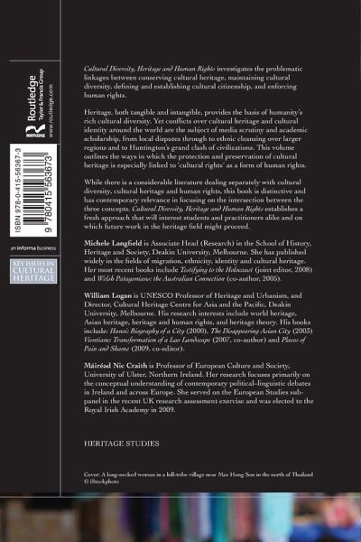 Part 1: Setting Agendas 1. Intersecting Concepts and Practices 2. Human Rights and the UNESCO Memory of the World Programme 3. Custodians of the Land: Indigenous Peoples, Human Rights and Cultural Integrity 4. Linguistic Heritage and Language Rights in Europe: Theoretical Considerations and Practical Implications Part 2: National vs Local Rights 5. Unravelling the Cradle of Civilization 'Layer by Layer': Iraq, its Peoples and Cultural Heritage 6. The Political Appropriation of Burma's Cultural Heritage and its Implications for Human rights 7. 'Elasticity' of Heritage, From Conservation to Human Rights: A Saga of Development and Resistance in Penang, Malaysia 8. Rendered Invisible: Urban Planning, Cultural Hheritage and Human Rights 9. 'Indigenous Peoples are not Multicultural Minorities': Cultural Diversity, Heritage and Indigenous Human Rights in Australia 10. A Sung Heritage: An Ecological Approach to Rights and Authority in Intangible Cultural Heritage in Northern Australia 11. 'Cuca Shops' and Christians: Heritage, Morality and Citizenship in Northern Namibia Part 3: Rights in Conflict 12. Protecting the Tay Nguyen Gongs: Conflicting Rights in Vietnam's Central Plateau 13. The Rights Movement and Cultural Revitalization: The Case of the Ainu in Japan 14. Cultural Heritage and Human Rights in Divided Cyprus 15. Leaving the Buildings Behind: Conflict, Sovereignty and the Values of Heritage in Kashmir