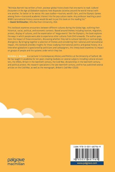 This textbook examines encounters between different cultures during the Global Age, outlining their historical, social, political, and economic contexts. Based around themes including tourism, migration, protest, display of cultures, and the examination of 'mega-events' like the Olympics, the book explores the ways in which people were able to experience other cultures from 1945 onwards. The author questions the impact of these encounters, discussing whether they led to cultural hybridity or contrastingly, divergence. By bringing together a selection of themes and considering their national and transnational impact, this textbook provides insights for those studying international politics and global history. At a time when globalism is questioned by politicians and campaigners, this timely book examines its impact on groups of people and the systems under which they live.