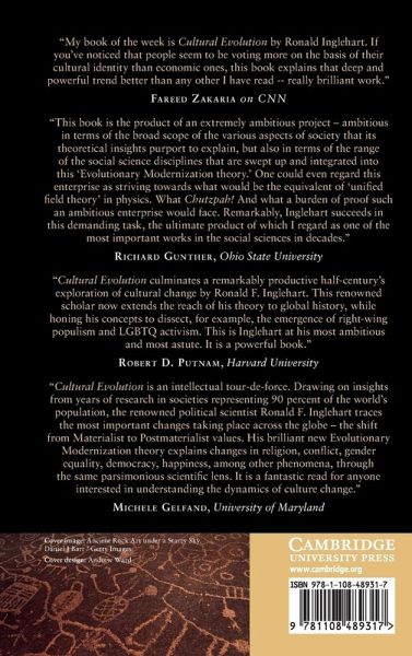 Written for a non-specialist audience, Cultural Evolution presents and tests a theory that helps explain the causes of the changes in people's motivations that have led to the rise of environmentalist parties, gender equality, and same sex marriage - and the reaction that led to Brexit and the election of Trump.