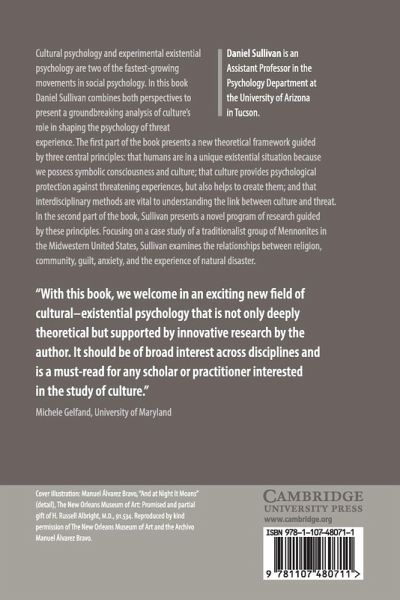 Cultural psychology and experimental existential psychology are two of the fastest-growing movements in social psychology. In this book, Daniel Sullivan combines both perspectives to present a groundbreaking analysis of culture's role in shaping the psychology of threat experience. The first part of the book presents a new theoretical framework guided by three central principles: that humans are in a unique existential situation because we possess symbolic consciousness and culture; that culture provides psychological protection against threatening experiences, but also helps to create them; and that interdisciplinary methods are vital to understanding the link between culture and threat. In the second part of the book, Sullivan presents a novel program of research guided by these principles. Focusing on a case study of a traditionalist group of Mennonites in the midwestern United States, Sullivan examines the relationship between religion, community, guilt, anxiety, and the experience of natural disaster.