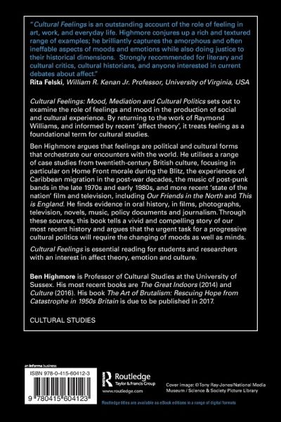 Cultural Feelings: Mood, Mediation and Cultural Politics sets out to examine the role of feelings and mood in the production of social and cultural experience. By returning to the work of Raymond Williams, and informed by recent 'affect theory', it treats feeling as a foundational term for cultural studies.