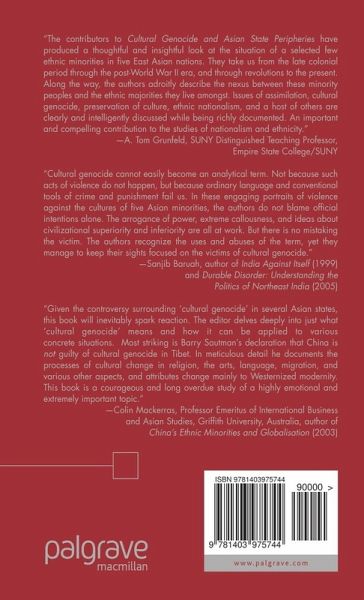 "The contributors to Cultural Genocide and Asian State Peripheries have produced a thoughtful and insightful look at the situation of a selected few ethnic minorities in five East Asian nations. They take us from the late colonial period through the post World War II era, and through revolutions to the present. Along the way, the authorsadroitly describe the nexus between these minority peoples and the ethnic majorities they live amongst. Issues of assimilation, cultural genocide, preservation of culture, ethnic nationalism and a host of others are clearly and intelligently discussed while being richly documented. An important and compelling contribution to the studies of nationalism and ethnicity." - A. Tom Grunfeld, SUNY Distinguished Teaching Professor, Empire State College/SUNY"Cultural genocide cannot easily become an analytical term. Not because such acts of violence do not happen. But because ordinary language and conventional tools of crime and punishment fail us. In these engaging portraits of violence against the cultures of five Asian minorities, the authors do not blame official intentions alone. The arrogance of power, extreme callousness, and ideas about civilizational superiority and inferiority are all at work. But there is no mistaking the victim. The authors recognize the uses and abuses of the term, yet they manage to keep their sights focused on the victims of cultural genocide."