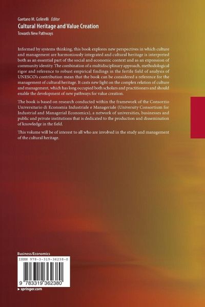 Informed by systems thinking, this book explores new perspectives in which culture and management are harmoniously integrated and cultural heritage is interpreted both as an essential part of the social and economic context and as an expression of community identity. The combination of a multidisciplinary approach, methodological rigor and reference to robust empirical findings in the fertile field of analysis of UNESCO's contribution mean that the book can be considered a reference for the management of cultural heritage. It casts new light on the complex relation of culture and management, which has long occupied both scholars and practitioners and should enable the development of new pathways for value creation.