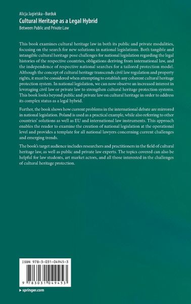 This book examines cultural heritage law in both its public and private modalities, focusing on the search for new solutions in national legislations. Both tangible and intangible cultural heritage pose challenges for national legislation regarding the legal histories of the respective countries, obligations deriving from international law, and the independence of respective national searches for a tailored protection model. Although the concept of cultural heritage transcends civil law regulation and property rights, it must be considered when attempting to establish any coherent cultural heritage protection system. In national legislation, we can now observe an increased interest in leveraging civil law or private law to strengthen cultural heritage protection systems. This book looks beyond public and private law on cultural heritage in order to address its complex status as a legal hybrid.