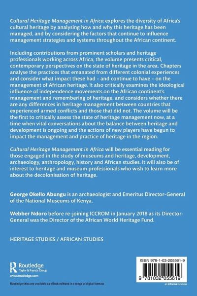 Cultural Heritage Management in Africa will be essential reading for those engaged in the study of museums and heritage, development, archaeology, anthropology, history and African studies. It will also be of interest to heritage and museum professionals who wish to learn more about the decolonisation of heritage.