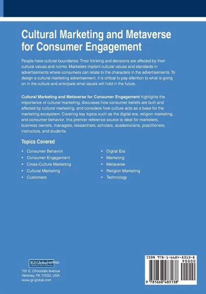 People have cultural boundaries. Their thinking and decisions are affected by their cultural values and norms. Marketers implant cultural values and standards in advertisements where consumers can relate to the characters in the advertisements. To design a cultural marketing advertisement, it is critical to pay attention to what is going on in the culture and anticipate what issues will hold in the future. Cultural Marketing and Metaverse for Consumer Engagement highlights the importance of cultural marketing, discusses how consumer beliefs are built and affected by cultural marketing, and considers how culture acts as a base for the marketing ecosystem. Covering key topics such as the digital era, religion marketing, and consumer behavior, this premier reference source is ideal for marketers, business owners, managers, researchers, scholars, academicians, practitioners, instructors, and students.