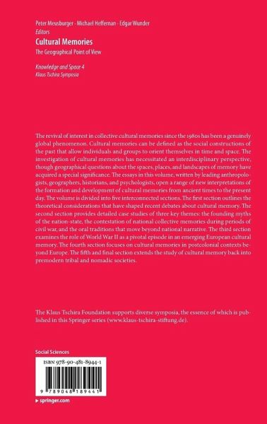 Cultural memories are social constructions of the past which allow human beings both personally and collectively to orient themselves in time and space. This book focusses on the role of spatiality and places for cultural memories. It offers new insights to the formation and development of cultural memories in ancient and modern societies. The book concentrates on theoretical considerations how cultural memories should be conceptualised, includes three case studies to apply these concepts to three very different contexts, focuses on the question of an emerging, distinct European cultural memory, its variances and especially the role of World War II for its origination, studies cultural memories in post-colonial contexts outside Europe, and offers insides on cultural memories in tribal, nomadic societies before or on the edge of Neolithic revolution. Cultural memories are social constructions of the past which allow humans personally and collectively to orient themselves in time and space. In this book, scholars in anthropology, egyptology, geography, history, political science and psychology offer new insights to the formation and development of cultural memories in ancient and modern societies, focusing on the role of spatiality and places.