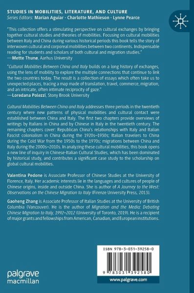 This book offers a critical analysis of global mobilities across China and Italy in history. In three periods in the twentieth century, new patterns of physical mobilities and cultural contact were established between the two countries which were either novel at the time of their emergence or impactful on subsequent periods. The first two chapters provide overviews of writings by Italians in China and by Chinese in Italy in the twentieth century. The remaining chapters cover: Republican China's relationships with Italy and Italian Fascist colonialism in China during the 1920s-1930s; Italian travelers to China during the Cold War from the 1950s to the 1970s; migrations between China and Italy during the 2000s-2010s. In analyzing these cultural mobilities, this book opens a new line of inquiry in Chinese-Italian Cultural Studies, which has been dominated by historical study, and contributes a significant case study to the scholarship on global cultural mobilities.