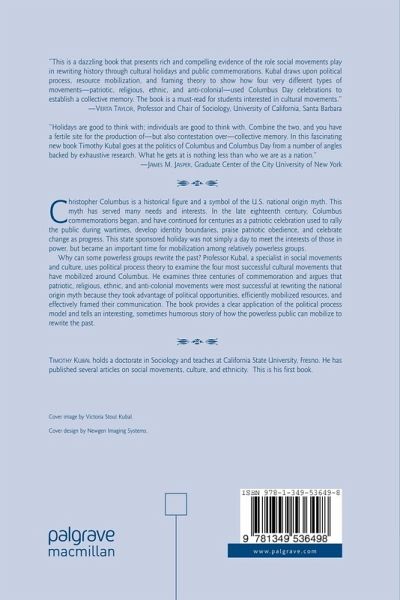"Kubal's study provides an interesting and insightful exploration of how different types of groups relate to the national origin myth of Christopher Columbus...it presents a thought provoking account of what is really just a story; a tale of how American society has adjusted and adapted a narrative of what many still consider its originating event." - Timothy B. Gongaware, Sociological Spectrum