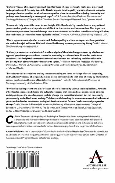 Cultural Processes of Inequality: A Sociological Perspective show how systemic inequality is produced and reproduced through mundane, routine actions based on taken-for-granted assumptions. The book ties such cultural assumptions to personal and institutional behavior, drawing connections between individuals, culture (as meaning systems) and larger social structures.
