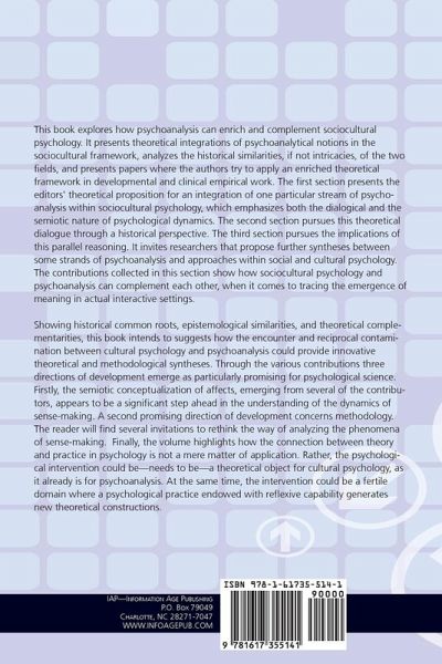 This book explores how psychoanalysis can enrich and complement sociocultural psychology. It presents theoretical integrations of psychoanalytical notions in the sociocultural framework, analyzes the historical similarities, if not intricacies, of the two fields, and presents papers that have tried to apply an enriched theoretical framework in developmental and clinical empirical work. The first section presents editors' theoretical proposition for an integration of one particular stream of psychoanalysis within sociocultural psychology, which emphasizes both the dialogical and the semiotic nature of psychological dynamics. The second section pursues this theoretical dialogue through a historical perspective. The third section pursues the implications of this parallel reasoning. It invites researchers that propose further syntheses between some strands of psychoanalysis and approaches within social and cultural psychology. The contributions collected in this section show how sociocultural psychology and psychoanalysis can complement each other, when it comes to tracing the emergence of meaning in actual interactive settings. Showing historical common roots, epistemological similarities, and theoretical complementarities, this book intends to suggests how the encounter and reciprocal contamination between cultural psychology and psychoanalysis could provide innovative theoretical and methodological syntheses. Through the various contributions three directions of development emerge as particularly promising for psychological science. Firstly, the semiotic conceptualization of affects, emerging from several of the contributors, appears to be a significant step ahead in the understanding of the dynamics of sense-making. A second promising direction of development concerns methodology. The reader will find several invitations to rethink the way of analyzing the phenomena of sense-making. Finally, the volume highlights how the connection between theory and practice in psychology is not a mere matter of application. Rather, the psychological intervention could be ¿ needs to be ¿ a theoretical object for cultural psychology, as it already is for psychoanalysis. At the same time, the intervention could be a fertile domain where a psychological practice endowed with reflexive capability generates new theoretical constructions.