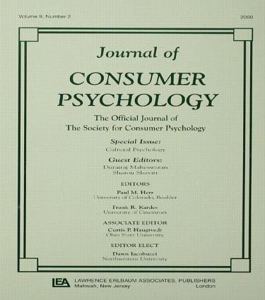 Volume 9 Number 2 2000. Contents: D. Maheswaran S. Shavitt Issues and New Directions in Global Consumer Psychology. J.L. Aaker J. Sengupta Averaging Versus Attenuation: The Role of Culture in the Resolution of Information Incongruity. R. Batra V. Ramaswamy D.L. Alden J-B.E.M. Steenkamp S. Ramachander Effects of Brand Local and Nonlocal Origin on Consumer Attitudes in Developing Countries. R.P. Bagozzi N. Wong S. Abe M. Bergami Cultural and Situational Contingencies and the Theory of Reasoned Action: Application to Fast Food Restaurant Consumption. C.L. Wang T. Bristol J.C. Mowen G. Chakraborty Alternative Modes of Self-Construal: Dimensions of Connectedness-Separateness and Advertising Appeals to the Cultural and Gender-Specific Self. J.A. Lee Adapting Triandis's Model of Subjective Culture and Social Behavior Relations to Consumer Behavior.