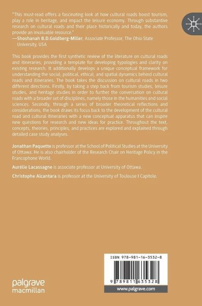 This book provides the first synthetic review of the literature on cultural roads and itineraries, providing a template for developing typologies and clarity on existing research. It additionally develops a unique conceptual framework for understanding the social, political, ethical, and spatial dynamics behind cultural roads and itineraries. The book takes the discussion on cultural roads in two different directions. Firstly, by taking a step back from tourism studies, leisure studies, and heritage studies in order to further the conversation on cultural roads with a broader set of disciplines, namely those in the humanities and social sciences. Secondly, through a series of broader theoretical reflections and considerations, the book draws its focus back to the development of the cultural road and cultural itineraries with a new conceptual apparatus that can inspire new questions for research and new ideas for practice. Throughout the text, concepts, theories, principles, and practices are explored and explained through detailed case study analyses.