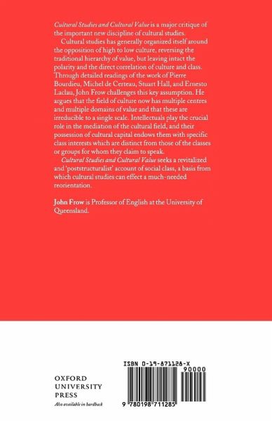 Cultural Studies and Cultural Value is a major critique of the important new discipline of cultural studies. Cultural studies has generally organized itself around the opposition of high to low culture, reversing the traditional hierarchy of value, but leaving intact the polarity and the direct correlation of culture and class. Intellectuals play the crucial role in the mediation of the cultural field, and their possession of cultural capital endows them with specific class interests which are distinct from those of the classes or groups for whom they claim to speak.