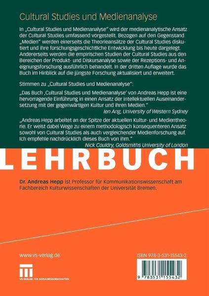 "Das Buch ,Cultural Studies und Medienanalyse' von Andreas Hepp ist eine hervorragende Einführung in einen Ansatz der intellektuellen Auseinandersetzung mit der gegenwärtigen Kultur und ihren Medien." Ien Ang, University of Western Sydney