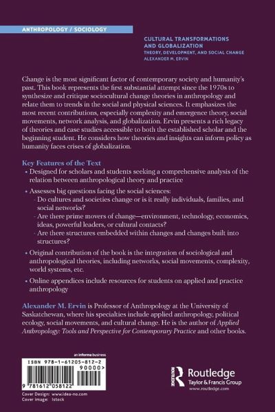 Change is the most significant factor of contemporary society and humanity s past. This book represents the first substantial attempt since the 1970s to synthesize and critique sociocultural change theories in anthropology and relate them to trends in the social and physical sciences. It emphasizes the most recent contributions especially complexity and emergence theory, social movements, network analysis, and globalization. Ervin presents a rich legacy of theories and case studies accessible to both the established scholar and the beginning student. He considers how theories and insights can inform policy as humanity faces crises of globalization.Key Features of the Text Designed for scholars and students seeking a comprehensive analysis of the relation between anthropological theory and practice. Assesses big questions facing the social sciences: Do cultures and societies change or is it really individuals, families, and social networks? Are there prime movers of change environment, technology, economics, ideas, powerful leaders, or cultural contacts? Are there structures embedded within changes and changes built into structures? Original contribution of the book is the integration of sociological and anthropological theories, including networks, social movements, complexity, world systems, etc. Online appendices include resources for students on applied and practice anthropology."