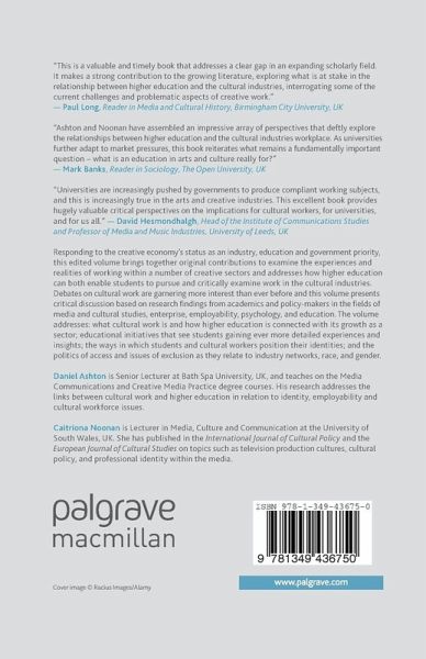 "This is a valuable and timely book that addresses a clear gap in an expanding scholarly field. It makes a strong contribution to the growing literature, exploring what is at stake in the relationship between higher education and the cultural industries, interrogating some of the current challenges and problematic aspects of creative work." - Paul Long, Reader in Media and Cultural History, Birmingham City University, UK