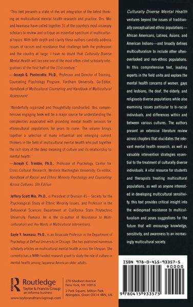 First published in 2003. The most comprehensive book on the topic of multicultural mental health, Culturally Diverse Mental Health addresses the challenge of counseling diverse populations including multiracial, homosexual, geriatric, and disabled individuals. Because many clients of diverse backgrounds have entered therapy in the last two decades, old models of treatment based on the mainstream majority no longer apply. This book compiles the latest research on a widely diverse number of populations and addresses the issue of resistance to the need to modify old practices to apply to these populations.…mehr