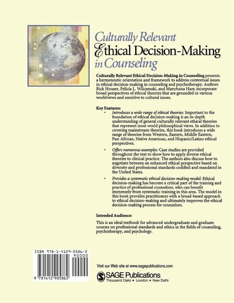 Culturally Relevant Ethical Decision-Making in Counseling presents a hermeneutic orientation and framework to address contextual issues in ethical decision-making in counseling and psychotherapy. Authors Rick Houser, Felicia L. Wilczenski, and Mary Anna Ham incorporate broad perspectives of ethical theories which are grounded in various worldviews and sensitive to cultural issues.