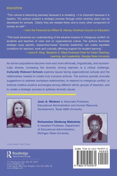 The authors provide teachers and school leaders concrete suggestions to address workplace relationships; to respond to intergroup conflict; to create positive exchanges among different ethnic groups of teachers; and to create a strategic process to address diversity issues.