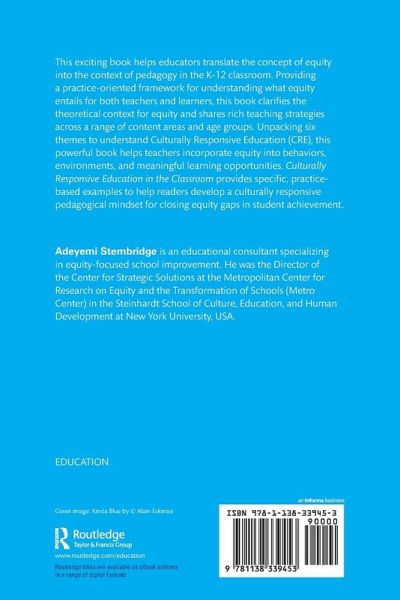 This exciting book helps educators translate the concept of equity into the context of pedagogy in the K-12 classroom. Providing a practice-oriented framework for understanding what equity entails for both teachers and learners, this book clarifies the theoretical context for equity and shares rich teaching strategies across a range of content areas and age groups. Unpacking six themes to understand Culturally Responsive Education (CRE), this powerful book helps teachers incorporate equity into behaviors, environments, and meaningful learning opportunities. Culturally Responsive Education in the Classroom provides specific, practice-based examples to help readers develop a culturally responsive pedagogical mindset for closing equity gaps in student achievement.