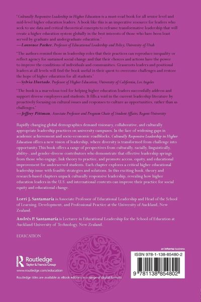 Rapidly changing global demographics demand visionary, collaborative, and culturally appropriate leadership practices on university campuses. In the face of widening gaps in academic achievement and socio-economic roadblocks, Culturally Responsive Leadership in Higher Education offers a new vision of leadership, where diversity is transformed from challenge into opportunity. This book offers a range of perspectives from culturally, racially, linguistically, ability, and gender-diverse contributors who demonstrate that effective leadership springs from those who engage, link theory to practice, and promote access, equity, and educational improvement for underserved students. Each chapter explores a critical higher educational leadership issue with feasible strategies and solutions. In this exciting book, theory and research-based chapters unpack culturally responsive leadership, revealing how higher education leaders in the U.S. and international contexts can improve their practice for social equity and educational change.