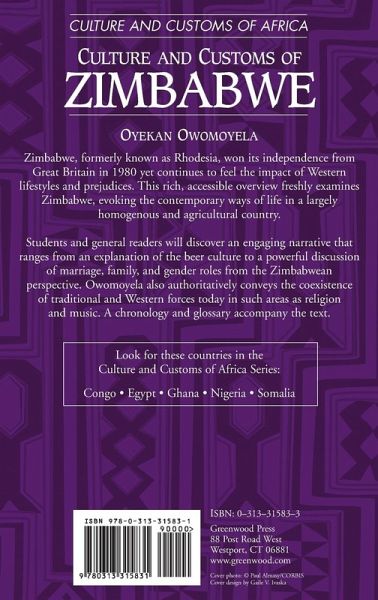 Zimbabwe, formerly known as Rhodesia, won its independence from Great Britain in 1980 yet continues to feel the impact of Western lifestyles and prejudices. This rich, accessible overview freshly examines Zimbabwe, evoking the contemporary ways of life in a largely homogenous and agricultural country. Students and general readers will discover an engaging narrative that ranges from an explanation of the beer culture to a powerful discussion of marriage, family, and gender roles from the Zimbabwean perspective. Owomoyela also authoritatively conveys the coexistence of traditional and Western forces today in such areas as religion and music. A chronology and glossary accompany the text.