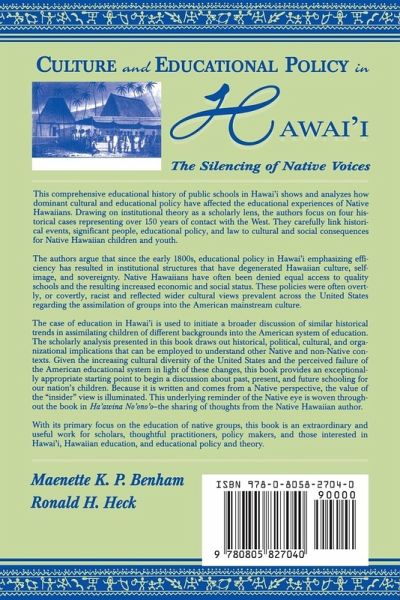 This comprehensive educational history of public schools in Hawai'i shows and analyzes how dominant cultural and educational policy have affected the education experiences of Native Hawaiians. Drawing on institutional theory as a scholarly lens, the authors focus on four historical cases representing over 150 years of contact with the West. They carefully link historical events, significant people, educational policy, and law to cultural and social consequences for Native Hawaiian children and youth. The authors argue that since the early 1800s, educational policy in Hawai'i emphasizing efficiency has resulted in institutional structures that have degenerated Hawaiian culture, self-image, and sovereignty. Native Hawaiians have often been denied equal access to quality schools and resulting increased economic and social status. These policies were often overtly, or covertly, racist and reflected wider cultural views prevalent across the United States regarding the assimilation of groups into the American mainstream culture. The case of education in Hawai'i is used to initiate a broader discussion of similar historical trends in assimilating children of different backgrounds into the American system of education. The scholarly analysis presented in this book draws out historical, political, cultural, and organizational implications that can be employed to understand other Native and non-Native contexts. Given the increasing cultural diversity of the United States and the perceived failure of the American educational system in light of these changes, this book provides an exceptionally appropriate starting point to begin a discussion about past, present, and future schooling for our nation's children. Because it is written and comes from a Native perspective, the value of the "insider" view is illuminated. This underlying reminder of the Native eye is woven throughout the book in Ha'awina No'ono'o--the sharing of thoughts from the Native Hawaiian author. With its primary focus on the education of native groups, this book is an extraordinary and useful work for scholars, thoughtful practitioners, policymakers, and those interested in Hawai'i, Hawaiian education, and educational policy and theory.