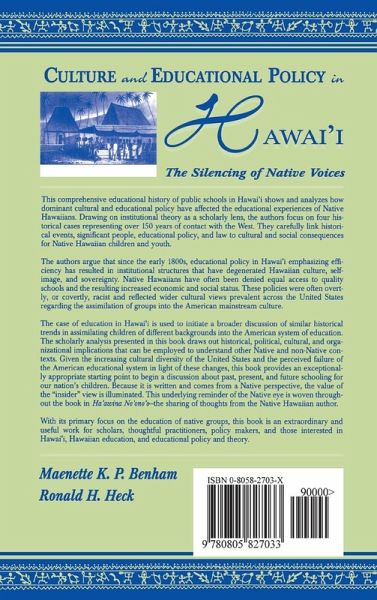 Provides a unified explanation of how dominant colonial educational practices have functioned over time to marginalize native peoples, in this case Hawaiians; focuses on evolution of culture and language policies in Hawaiian schools.