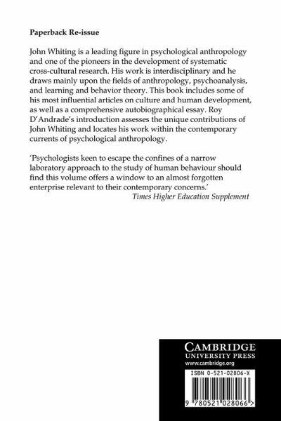 John Whiting is a leading figure in psychological anthropology and one of the pioneers in the development of systematic cross-cultural research. His work is interdisciplinary, and he draws mainly upon the fields of anthropology, psychoanalysis, and learning and behaviour theory. This book includes some of his most influential articles on culture and human development, as well as a comprehensive autobiographical essay. Roy D'Andrade's introduction assesses the unique contributions of John Whiting and locates his work within the contemporary currents of psychological research.