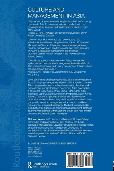 Local culture has long been recognised as a critically important factor in shaping management styles in different Asian countries. This book provides a comprehensive overview of culture and management in major East and Southeast Asian economies. Each chapter provides a survey of the country's history, culture and economy, going on to examine management in the country, together with management education and how management is currently changing. The book will provide an invaluable introduction for students of international management, for those studying management within East and Southeast Asia, and for businessmen trading with the region.