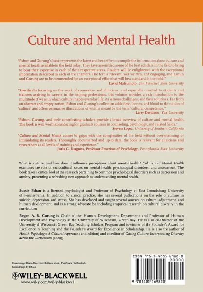 "One of the primary goals of psychology as a discipline is the alleviation of human suffering. To this end, it is imperative that we understand the various forms of human dysfunction and psychopathology, so that we can continuously intervene in constructive and helpful ways. As the world becomes smaller and borders more porous, psychologists also have the need to adopt a global perspective on the causes, forms, and treatments of various types of illnesses that afflict so many in the world today. Eshun and Gurung's book represents the latest and best effort to compile the information about culture and mental health available in the field today. They have assembled some of the best scholars in the field to bring to bear their expertise in each of their respective areas. Readers will be enlightened with the exceptional information described in each of the chapters. The text is relevant, well-written, and engaging, and Eshun and Gurung are to be commended for an exceptional effort that will be a standard in the field." - David Matsumoto, San Francisco State University