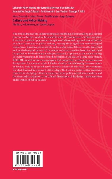 This book advances the understanding and modelling of sensemaking and cultural processes as being crucial to the scientific study of contemporary complex societies. It outlines a dynamic, processual conception of culture and a general view of the role of cultural dynamics in policy-making, drawing three significant methodological implications: pluralism, performativity, and semiotic capital. It focuses on the theoretical and methodological aspects of the analysis of culture and its dynamics that could be applied to the developing of policymaking and, in general, to the understanding of social phenomena. It draws from the experience and data of a large-scale project, RECRIRE, funded by the H2020 program that mapped the symbolic universes across Europe after the economic crisis. It further develops the relationship between culture and policy-making discussed in two previous volumes in this series, and constitutes the ideal third and final element of this trilogy. The book is a usefultool for academics involved in studying cultural dynamics and for policy-oriented researchers and decision-makers attentive to the cultural dimensions of the design, implementation and reception of public policies.