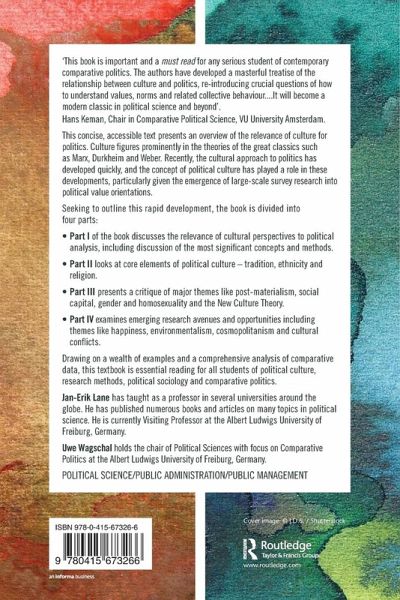 This concise, accessible text presents an overview of the relevance of culture for politics. Culture figures prominently in the theories of the great classics such as Marx, Durkheim and Weber. Recently, the cultural approach to politics has developed quickly, and the concept of political culture has played a role in these developments, particularly given the emergence of large-scale survey research into political value orientations.