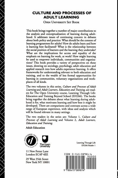 The authors provide a variety of perspectives on the conceptualisation of adult learning, drawing on sociology, psychology, adult education and applied research into how adults experience learning. Bringing together a number of major contributions to current debates about what learning during adulthood is for, what motivates learning, and how best it might be developed, the authors address a range of significant issues: What should be the context of learning programmed for adults, and who should decide? What are the implications in general and for women in particular of the current emphasis on learning for work, at work? How do adults learn and how is learning best facilitated? How might learning be used to empower individuals, communities and organisations?