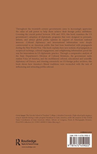 Throughout the twentieth century governments came to increasingly appreciate the value of soft power to help them achieve their foreign policy ambitions. Covering the crucial period between 1936 and 1953, this book examines the U.S. government's adoption of diplomatic programs that were designed to persuade, inform, and attract global public opinion in support of American national interests. Cultural diplomacy and international information were deeply controversial to an American public that been bombarded with propaganda during the First World War. This book explains how new notions of propaganda as reciprocal exchange, cultural engagement, and enlightening information paved the way for innovations in U.S. diplomatic practice. Through a comparative analysis of the State Department's Division of Cultural Relations, the government radio station Voice of America, and the multilateral cultural, educational and scientific diplomacy of Unesco, and drawing extensively on U.S. foreign policy archives, this book shows how America's liberal traditions were reconciled with the task of influencing and attracting publics abroad.