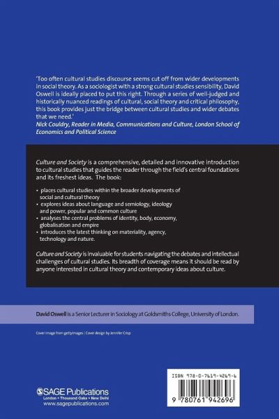 "Too often cultural studies discourse seems cut off from wider developments in social theory. As a sociologist with a strong cultural studies sensibility, David Oswell is ideally placed to put this right. Through a series of well-judged and historically nuanced readings of cultural, social theory and critical philosophy, this book provides just the bridge between cultural studies and wider debates that we need" - Nick Couldry, London School of Economics and Political Science David Oswell has written a comprehensive introduction to cultural studies that guides the reader through the field's central foundations and its freshest ideas. This book: * Grounds the reader in the foundations of cultural studies and cultural theory: language and semiology, ideology and power, mass and popular culture. * Analyzes the central problems: identity, body, economy, globalization and empire. * Introduces the latest developments on materiality, agency, technology and nature. Culture and Society is an invaluable guide for students navigating the dynamic debates and intellectual challenges of cultural studies. Its breadth and unparalleled coverage of theory will also ensure that it is read by anyone interested in questions of materiality and culture.
