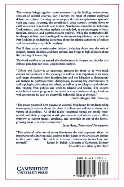This volume brings together the major statements by the leading contemporary scholars of cultural analysis on the relationship between culture and society.