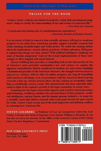 It is an article of faith in America that scientific advances will lead to wondrous progress in our daily lives. Americans proudly support scientific research that yields stunning breakthroughs and Nobel prizes. We relish the ensuing debate about the implications-moral, ethical, practical-of these advances. Will genetic engineering change our basic nature? Will artificial intelligence challenge our sense of human uniqueness? And yet the actual implementation of these technologies is often sluggish and much-delayed. From Star Trek to Jurassic Park, the American imagination has always been fascinated by the power of scientific technology. But what does the reality of scientific progress mean for our society? In this controversial book, Steven Goldberg provides a compelling look at the intersection of two of America's most powerful communities-law and science-to explain this apparent contradiction. Rarely considered in tandem, law and science highlight a fundamental paradox in the American character, the struggle between progress and process. Science, with its ethic of endless progress, has long fit beautifully with America's self image. Law, in accordance with the American ideal of giving everyone a fair say, stresses process above all else, seeking an acceptable, rather than a scientifically correct, result. This characteristic has been especially influential in light of the explosive growth of the legal community in recent years. Exposing how the legal system both supports and restricts American science and technology, Goldberg considers the role and future of three projects-artificial intelligence, nuclear fusion, and the human genome initiative-to argue for a scientific vision that infuses research with social goals beyond the pure search for truth. Certain to provoke debate within a wide range of academic and professional communities, Culture Clash reveals one of the most important and defining conflicts in contemporary American life.