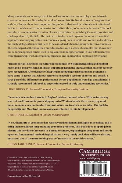 Many economists now accept that informal institutions and culture play a crucial role in economic outcomes. Driven by the work of economists like Nobel laureates Douglass North and Gary Becker, there is an important body of work that invokes cultural and institutional factors to build a more comprehensive and realistic theory of economic behavior. This book provides a comprehensive overview of research in this area, sketching the main premises and challenges faced by the field. The first part introduces and explains the various theoretical approaches to studying culture in economics, going back to Smith and Weber, and addresses the methodological issues that need to be considered when including culture in economics. The second part of the book then provides readers with a series of examples that show how the cultural approach can be used to explain economic phenomena in four different areas: entrepreneurship, trust, international business and comparative corporate governance.