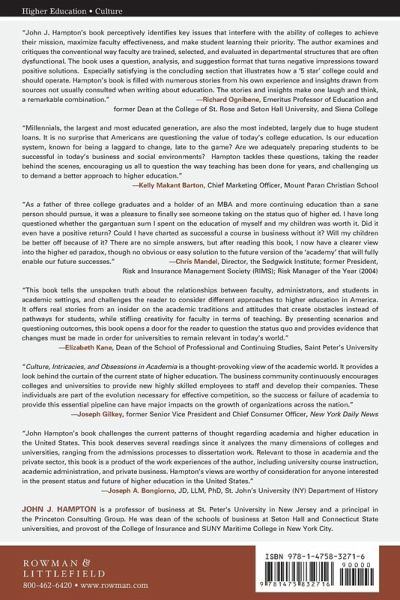 This book exposes unfortunate obsessions that dominate and shape the culture of higher education and shortchange parents and students. This book encourages the reader to challenge assumptions, opinions, biases, and emotions that distort viewpoints about higher education.