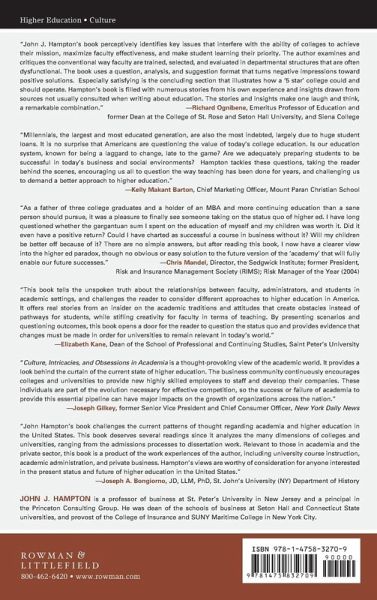 This book exposes unfortunate obsessions that dominate and shape the culture of higher education and shortchange parents and students. This book encourages the reader to challenge assumptions, opinions, biases, and emotions that distort viewpoints about higher education.