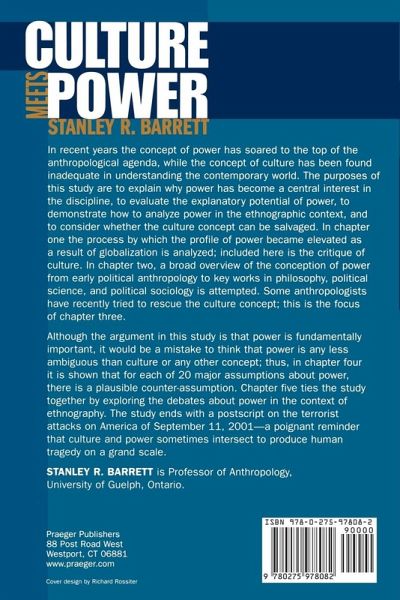 In recent years the concept of power has soared to the top of the anthropological agenda, while the concept of culture has been found inadequate in understanding the contemporary world. The purposes of this study are to explain why power has become a central interest in the discipline, to evaluate the explanatory potential of power, to demonstrate how to analyze power in the ethnographic context, and to consider whether the culture concept can be salvaged. In chapter one the process by which the profile of power became elevated as a result of globalization is analyzed; included here is the critique of culture. In chapter two, a broad overview of the conception of power from early political anthropology to key works in philosophy, political science, and political sociology is attempted. Some anthropologists have recently tried to rescue the culture concept; this is the focus of chapter three. Although the argument in this study is that power is fundamentally important, it would be a mistake to think that power is any less ambiguous than culture or any other concept; thus, in chapter four it is shown that for each of 20 major assumptions about power, there is a plausible counter-assumption. Chapter five ties the study together by exploring the debates about power in the context of ethnography. The study ends with a postscript on the terrorist attacks on America of September 11, 2001-a poignant reminder that culture and power sometimes intersect to produce human tragedy on a grand scale.