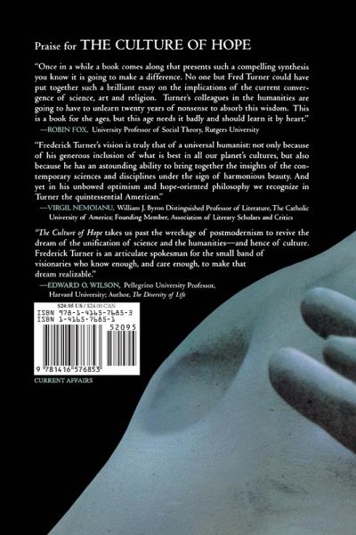 As we approach the new millenium, the moral, intellectual,and spiritual crisis of our time is visible most plainly in the sickness of the arts. The "postmodern" cultural establishment is philosophically empty and esthetically corrupt. But no one has been able to explain this decline or give a satisfying answer to the question of the proper role of the arts in our society. Now, in The Culture of Hope -- a manifesto for a new vision of culture that is both radical and classical -- Frederick Turner goes beyond the stale dichotomies of Left and Right to take the "third side" in the culture war: the side of art itself. Great art can never be politically correct, Turner reminds us, whether the correction comes from Right or Left, because its sources are deeper than politics. The visionary modernists (Picasso, Joyce, Stravinsky) understood this, but their successors today, as well as their conservative opponents, have forgotten. Turner sharply indicts the bankrupt tribe of venal mediocrities who now infest the arts, citing their naive rejection of morality, their ignorant denial of scientific truth, and their lazy dismissal of the Western cultural heritage. On the other hand, conservatives who call for a return to traditional values seek a socially "safe" vision of art that has never existed and never can. In the past, the arts have flowered when they drew their inspiration from new scientific visions of the cosmos. Thus Turner argues that the revolution in cosmology that is occurring today in the frontier fields of scientific thought will powerfully invigorate the artists of the future. A new esthetic synthesis arising from the unexpected convergence of religion, art, and science will restore a hopeful vision of the cosmos as intelligent, creative, and self-ordering and provide the missing ground for the recovery of classical values in the arts, such as beauty, order, harmony, and meaning. Turner points to new developments in chaos theory, neurobiology, evolution, and environmental science, among other fields, to offer us a guide to the emerging art of the "radical center" which he predicts will shape the culture of the future.